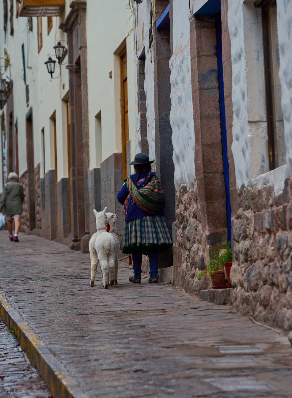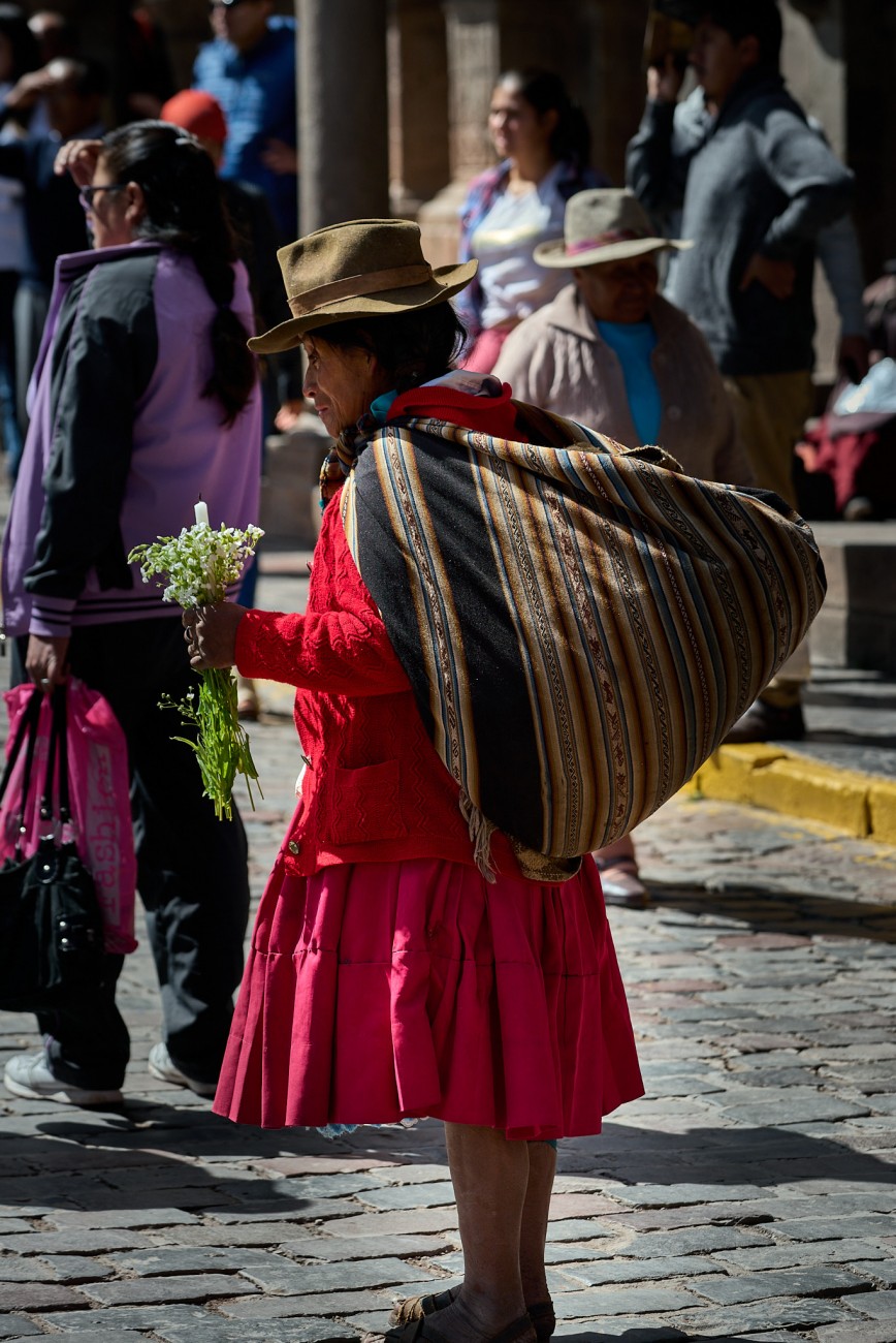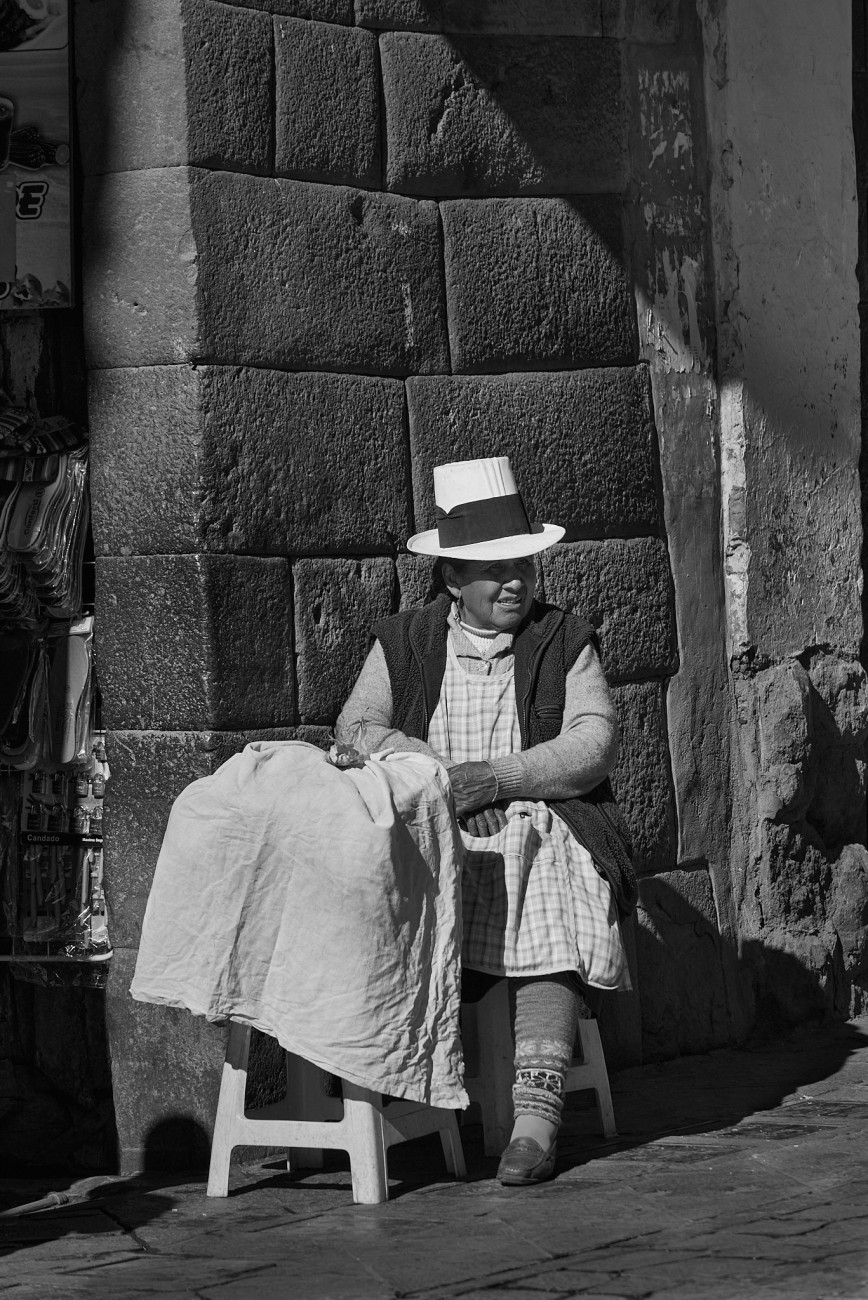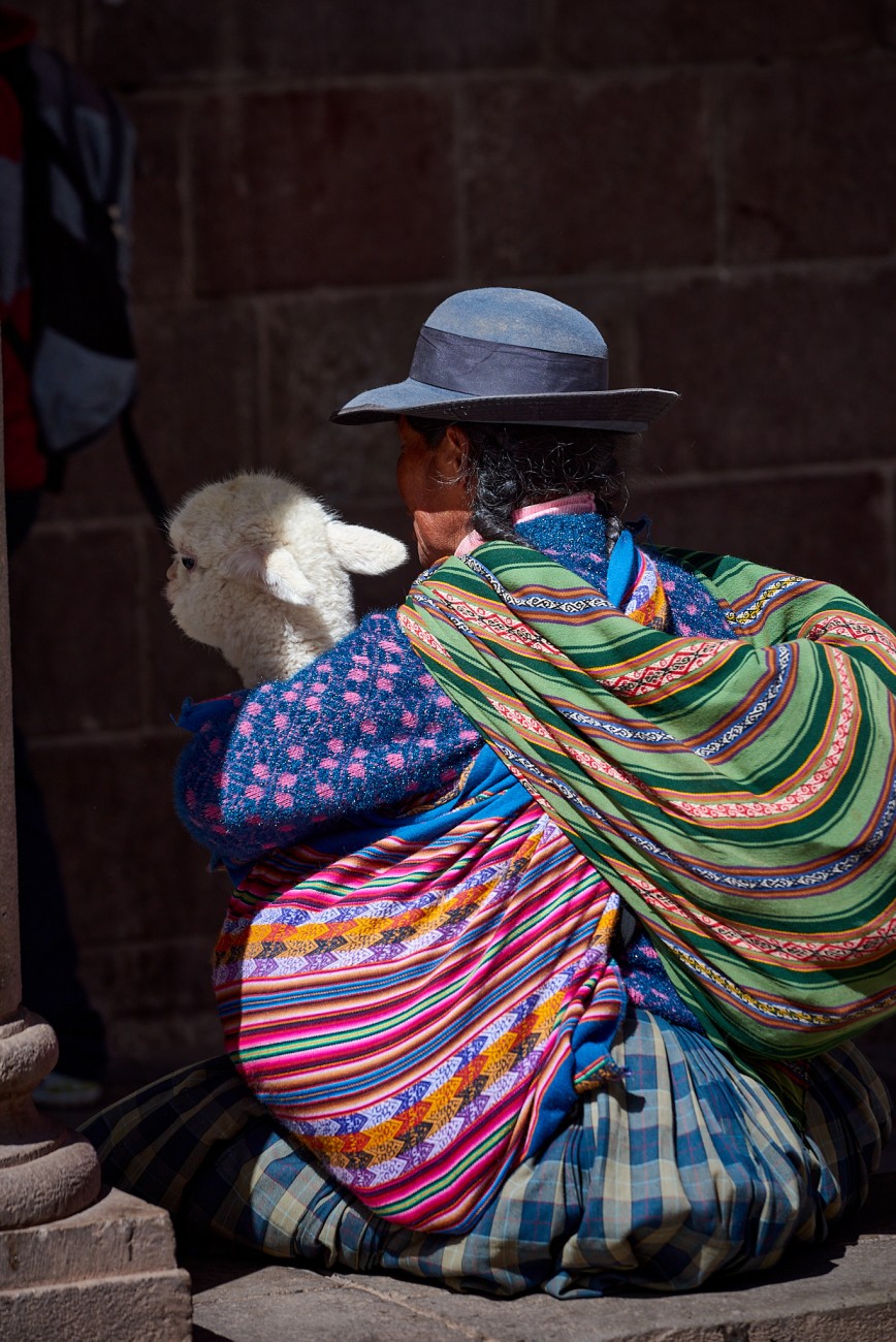 Narrow and steep streets, escorted by old Spanish mansions founded on even older Inca constructions. Streets where color stands out in the exteriors of their houses, the clothing of their people, the decorations of their animals. Streets and faces. Faces weather-beaten, streets and skin furrowed by the passage of time. Textures on the streets, textures on faces...shadows, lights, colors.