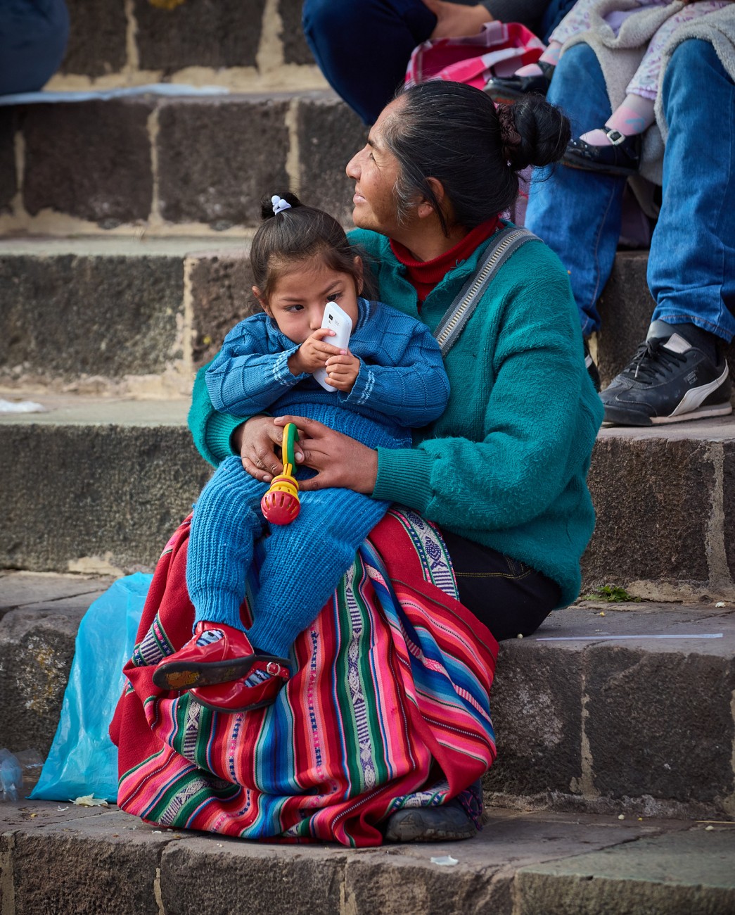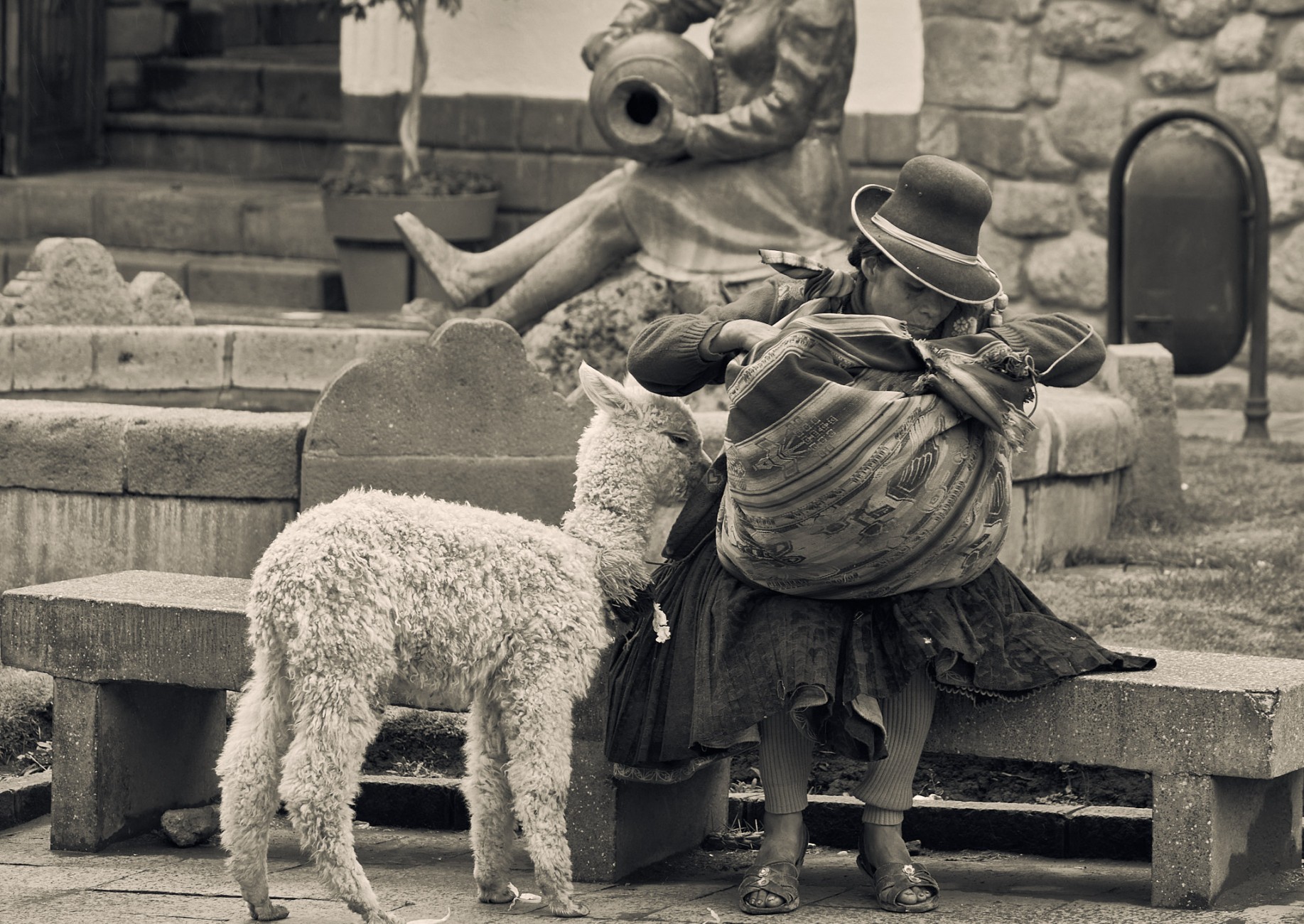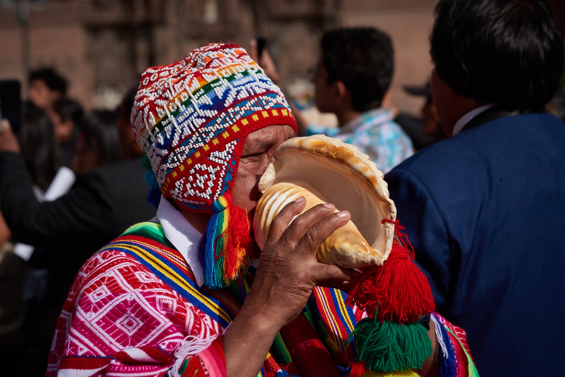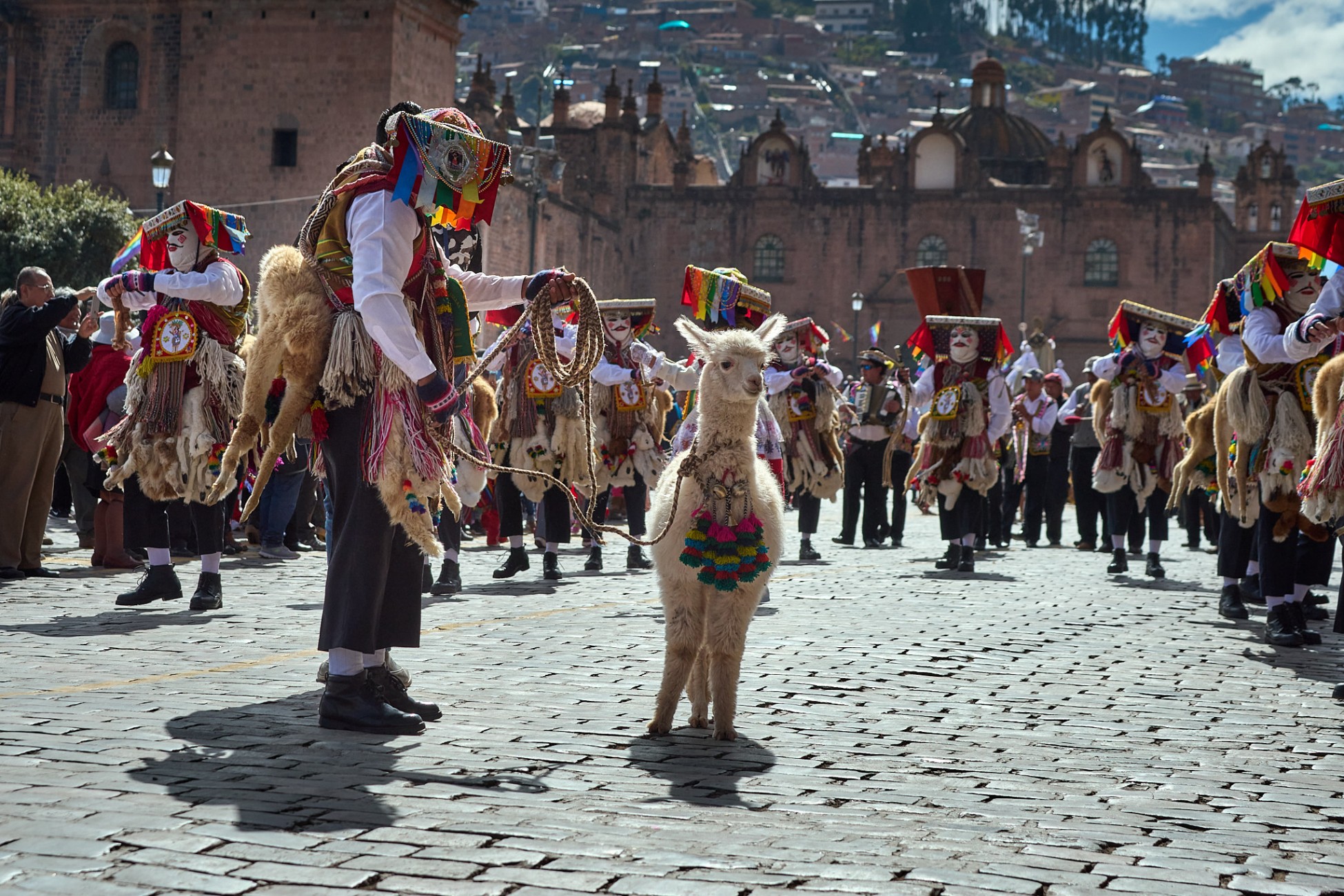 Narrow and steep streets, escorted by old Spanish mansions founded on even older Inca constructions. Streets where color stands out in the exteriors of their houses, the clothing of their people, the decorations of their animals. Streets and faces. Faces weather-beaten, streets and skin furrowed by the passage of time. Textures on the streets, textures on faces...shadows, lights, colors.