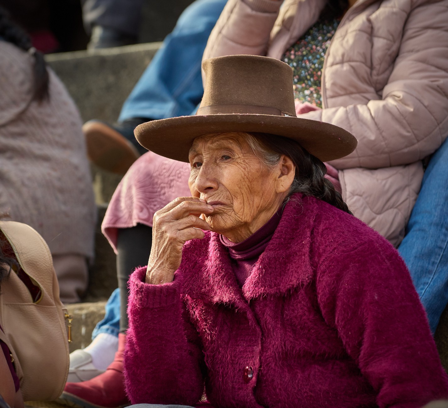 Calles estrechas y empinadas, escoltadas por antiguas casonas españolas cimentadas sobre las aún más antiguas construcciones incaicas. Calles donde el color resalta en los exteriores de sus casas, la vestimenta de su gente, los adornos de sus animales. Calles y rostros. Rostros curtidos por el clima, calles y pieles surcadas por el paso del tiempo. Texturas en las calles, texturas en los rostros...sombras, luces, colores.